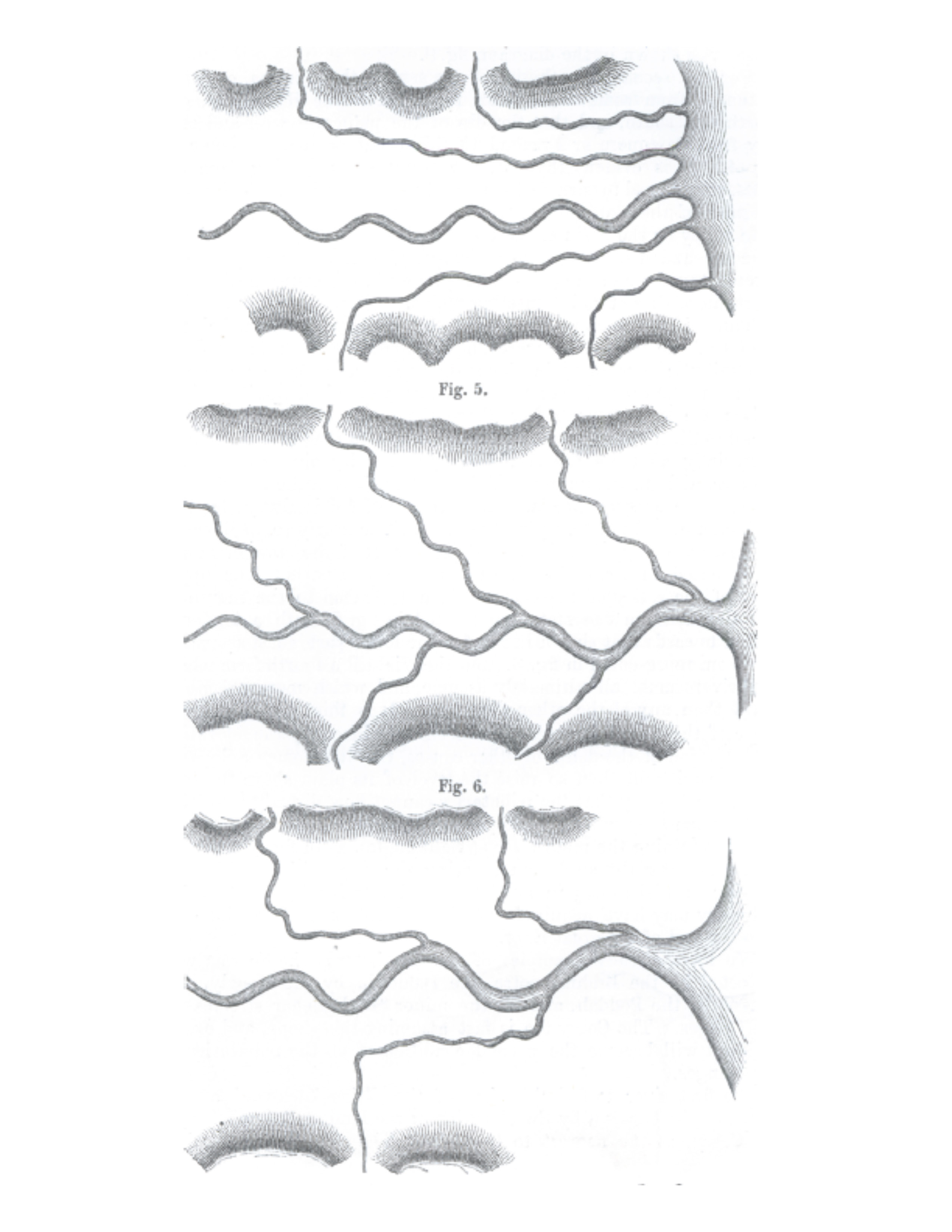 To avoid such fallacies—to circumvent the open-ended spatio-temporality of such riverine geography—one needed to decipher general principles. He opted for a theoretical model of the courses of rivers (fig. 2). Introducing the river as a body of water in “unstable equilibrium” in a manner exactly the opposite of a pendulum, which would oscillate “for ever if we could abstract all the natural conditions of friction, resistance of the atmosphere. &c,” he wrote,