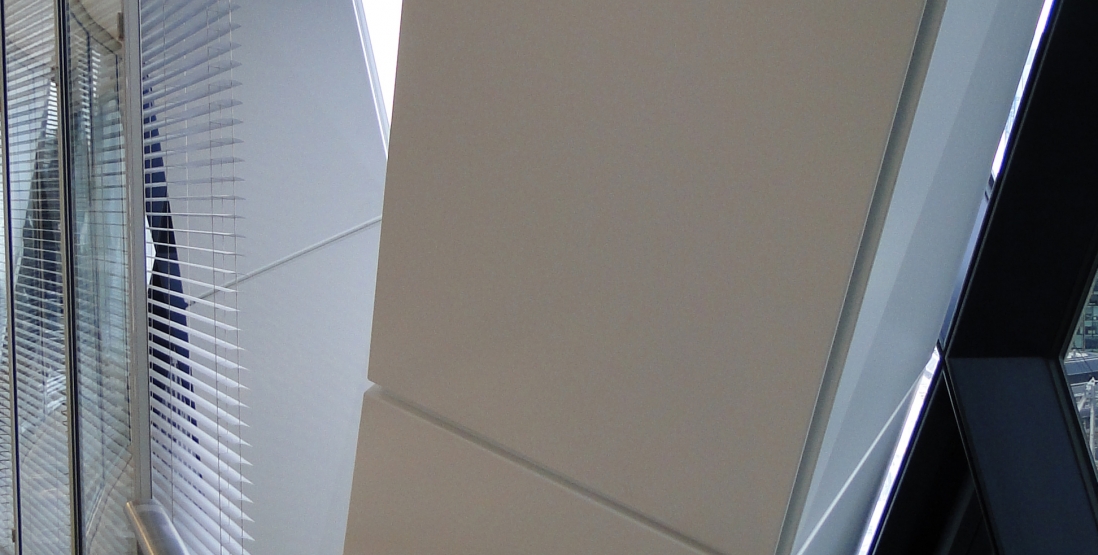 Exterior air drawn in through façade vents is cooled or heated by these fan coil units, which sit between the underside of the floor slabs and the dropped ceilings, before supplying the office space. This distributed system eliminates the air ducts that might otherwise eat up core space, and it allows each office finger to operate as a semi-autonomous zone for temperature control purposes. The heat that builds up between the two layers of curtain-wall is exhausted by vents at the top of each two-story exhaust zone. The operable windows that line the six-story spiral atria allow the computerized building management system to exploit the pressure differentials at points thirty degrees apart around the façade to draw air in and through the building.