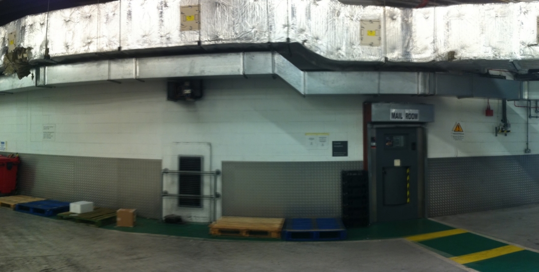 The plant rooms in the basement and upper floors contain water-cooled chillers that supply temperature-controlled water to fan coil units distributed around the building at every floor. (Additional plant facilities are housed, along with property management offices, in a narrow rectangular six-story building at the northeast corner of the site.)