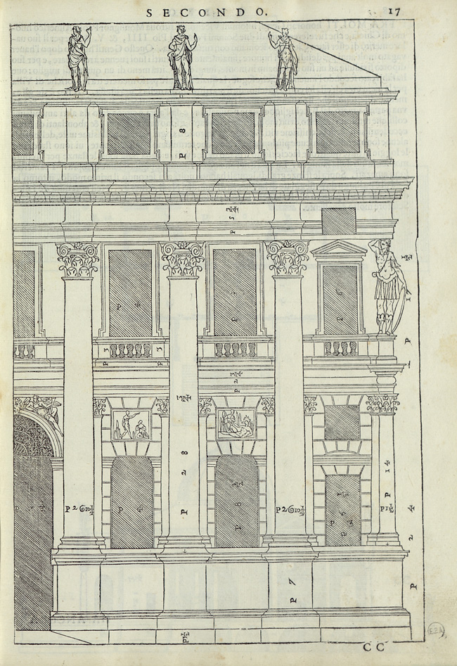More than once I have desired [and sought] to communicate my efforts to others so that [before they came to light] we could together investigate the truth, but this, for some reason that I don’t quite understand, has not happened. In the drawings of the important figures I have used the works of Mr. Andrea Palladio, architect of Vicenza, who has to his incredible advantage, from what I have seen with my own eyes and that which I have heard in the judgement of excellent men, acquired a great name owing to both the most subtle and graceful drawings of plans, elevations, and sections, as in what will follow, and in the execution and making of many superb edifices in both his own region and in others, [both public and private,] that contend with the ancients, illuminate the moderns, and will fill those who come after with marvel.59