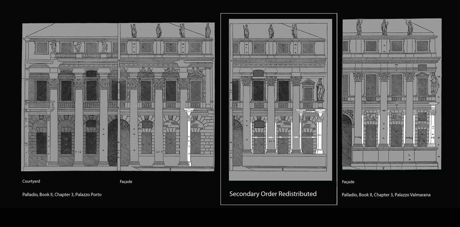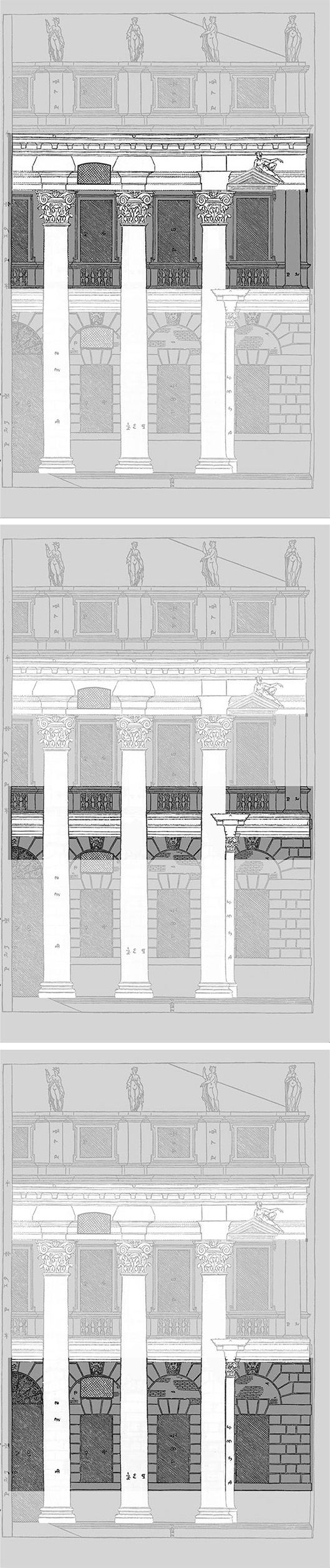 Transformational sequence of Palazzo Porto to Palazzo Valmarana: Figural elements repositioned.