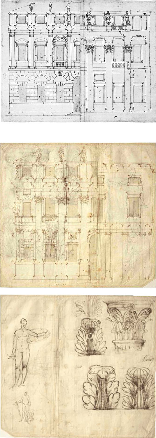 For RIBA XVII/11r, see https://www.ribapix.com/Design-for-a-palace-facade; for RIBA XVII/19 and 26, see https://www.ribapix.com/Design-for-the-Palazzo-da-Monte-Vicenza-elevation and https://www.ribapix.com/Design-for-the-Palazzo-da-Monte-Vicenza-facade; and for RIBA XVII/16, see https://www.ribapix.com/design-for-a-villa-facade-and-plan.