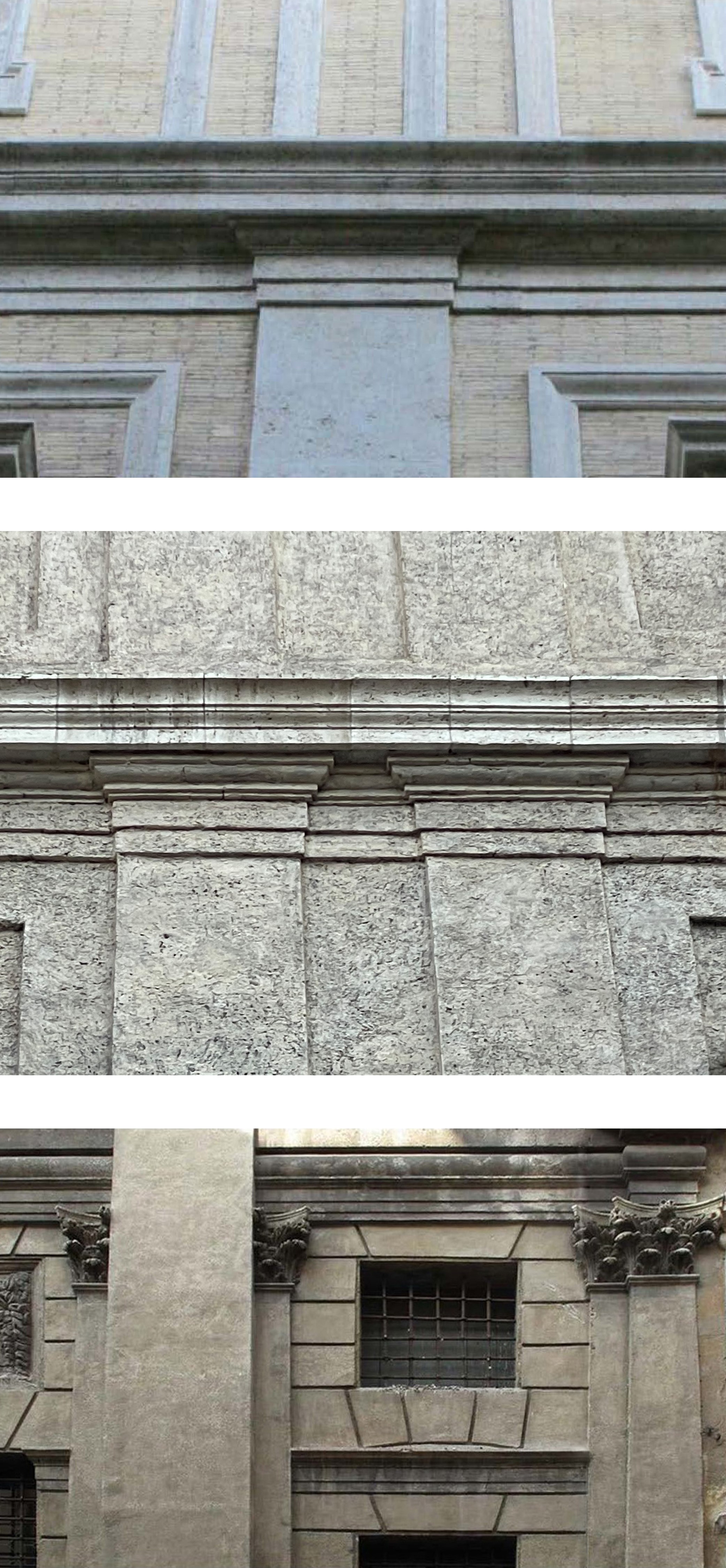 Thus, whether the courtyard section for Palazzo Porto was designed before or after the design for Palazzo Valmarana, this now reverse engineering by Palladio provides a series of clues and missing links to help us comprehend the transformation from his earlier Palazzo Porto (Fig. 8, left)—which followed a Roman mode of palazzo design with its clearly demarcated rusticated base and ennobled second level—to the evolution decades later with the self-reflective play of these demarcations in Palazzo Valmarana (Fig. 8, right).