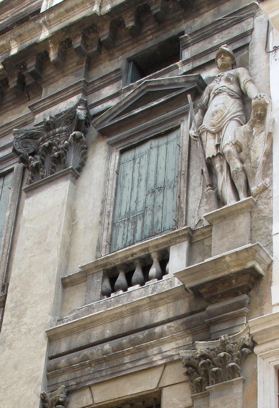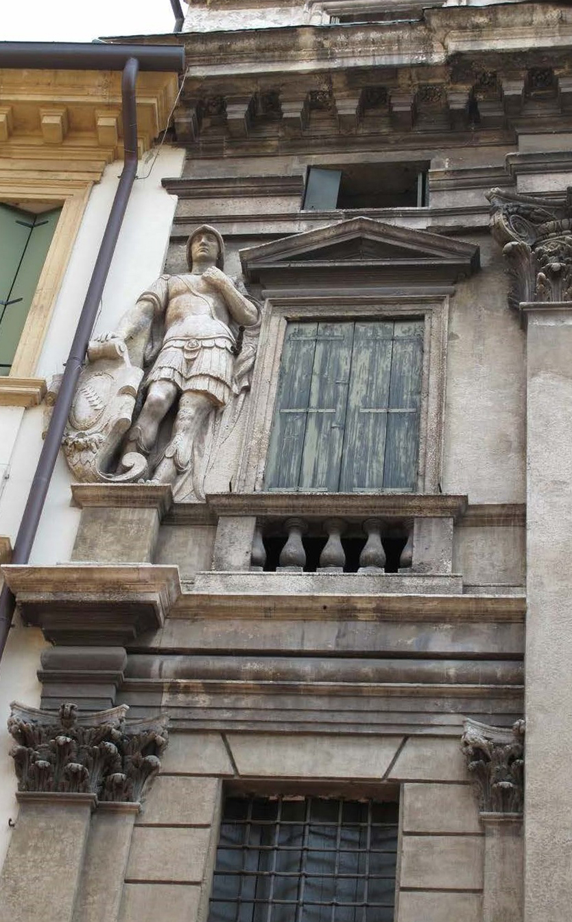 Here Palladio believed it sufficient to substitute a Corinthian pilaster of the minor order, on the cornice of which he placed a statue of a Soldier, with his back to the wall, which fills the void up to the architrave of the Composite order… . Nevertheless, our Andrea is not exempt from censure, due to the excessive weakness that the work shows on the corners; in which architects have always endeavored to show greater solidity than in any other part of the building.32