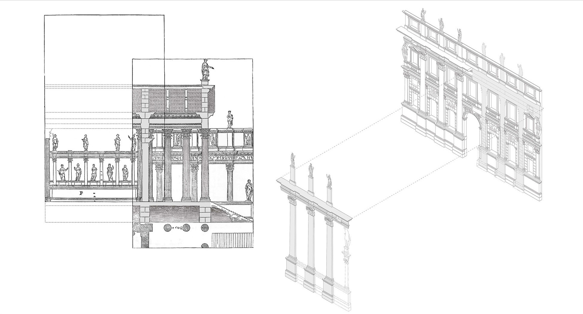 Fig. 12. (d) Andrea Palladio, Palazzo Porto to Palazzo Valmarana, shifting along “the axis of projection.” Digital visualization by the author.